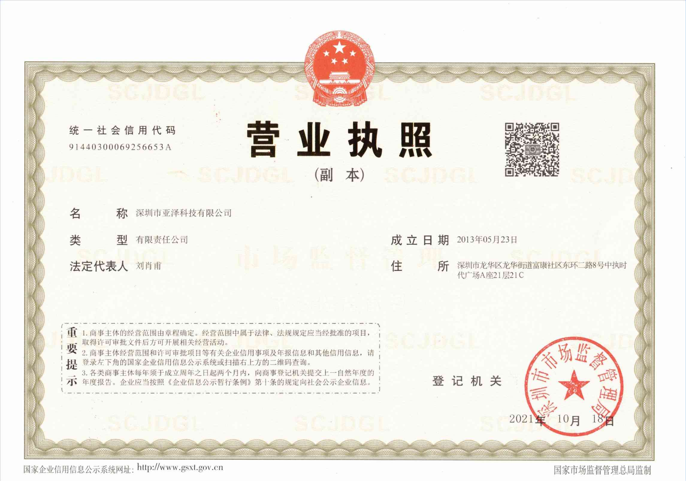 • 深圳亞澤營(yíng)業(yè)執(zhí)照
